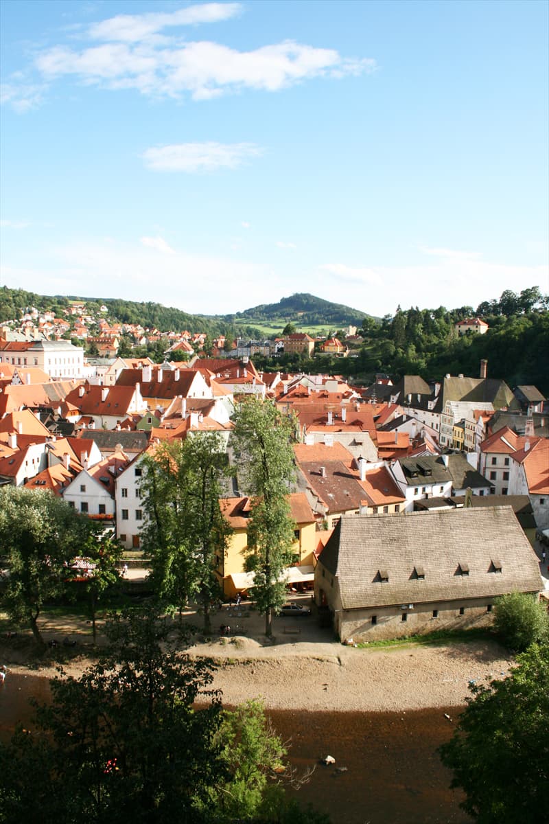 私たちが利用したツアーではチェスキークルムロフには午後の到着となりましたので、西日の太陽のオレンジ色の光が、チェスキークルムロフの建物の屋根などの色を強調してとてもきれいでした。
