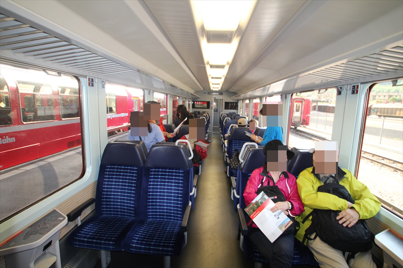 ベルニナ線の列車は普通車両であってもトイレも綺麗ですし、席も空いていたことからとても快適に乗車を楽しめました。