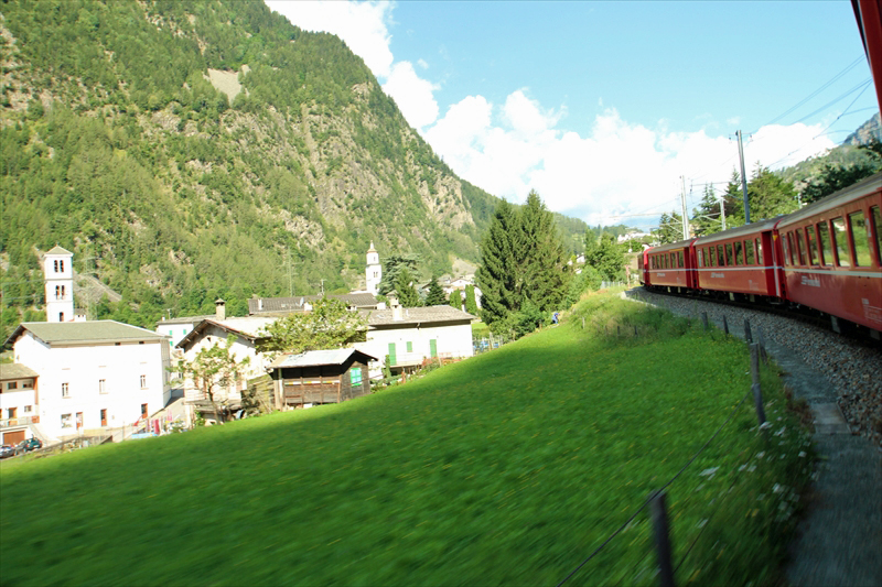 そしてスイスとの国境駅のCampocologno(カンポコローニョ)を通過するのですが、ここからイタリア語圏からロマンシュ語/ドイツ語圏っぽい雰囲気へと変化するのですが、街並みや景色の変化を車窓からの景色で感じられます。