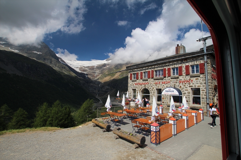 Alp Grüm(アルプ・グリュム)は標高約2,091 mの絶景展望ポイントの駅です。