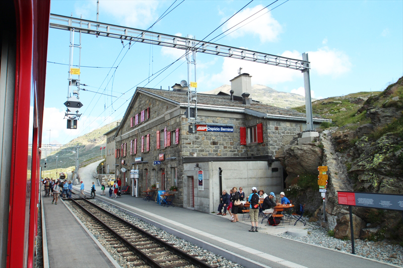 Ospizio Bernina(オスピツィオ・ベルニーナ)はベルニナ線の最高地点(2,253 m)に位置する駅で、ここがこの区間の頂点です。