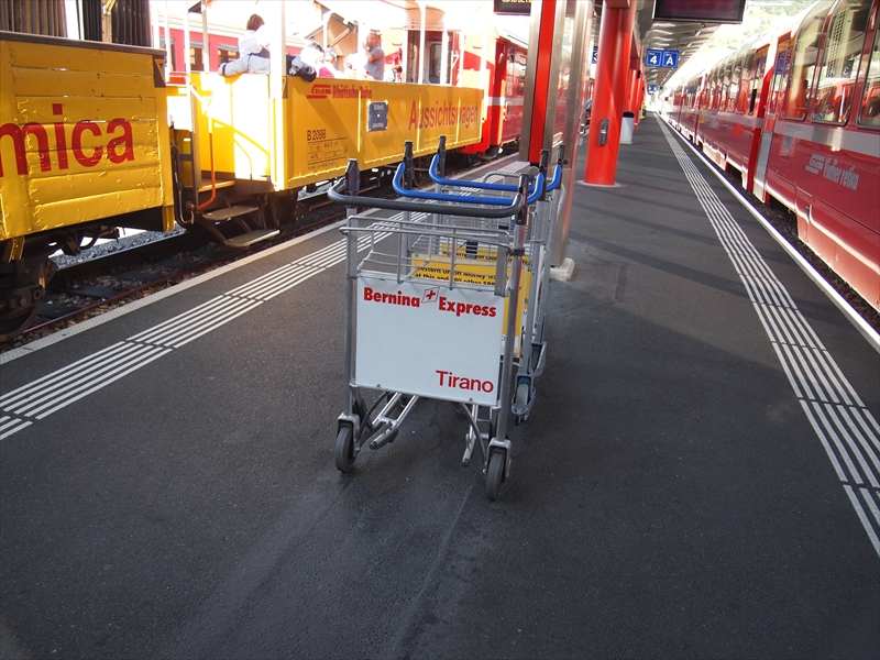 バスでティラノの駅に到着しましたらベルニナ線の列車に乗車しました。