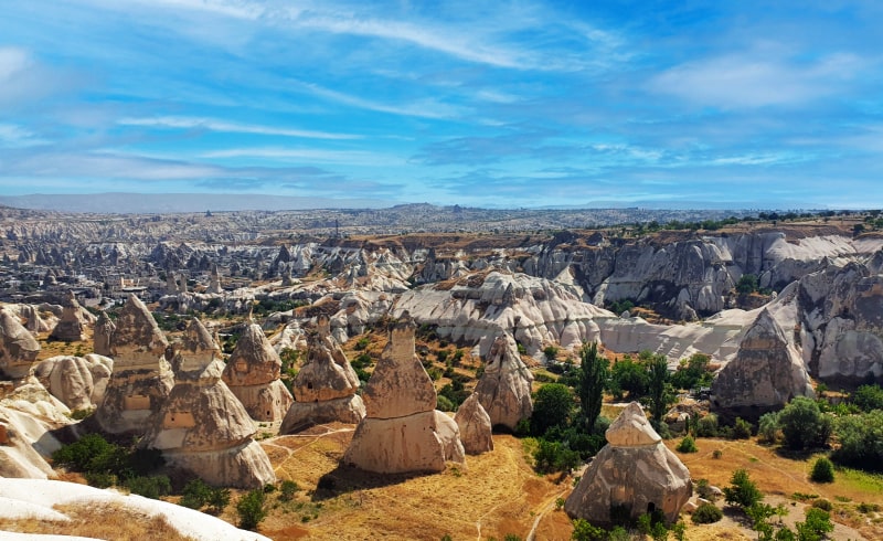 カッパドキアは標高1,000mを超える高地のため夏は乾燥して日差しが強く、朝晩と日中の温度差が激しくなっています。