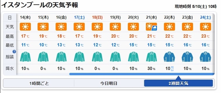 イスタンブールの3月上旬はまだ最低気温は0℃の日もありますが後半には5℃から10℃ほどとなります。