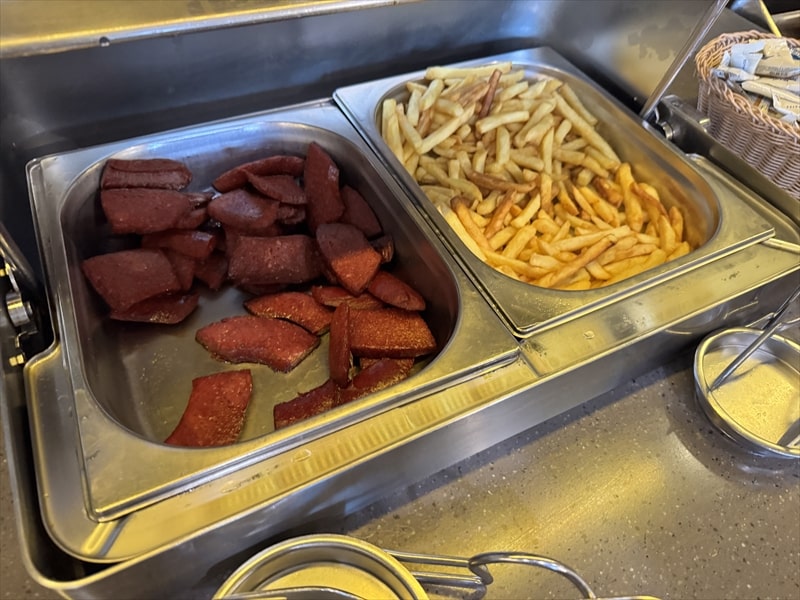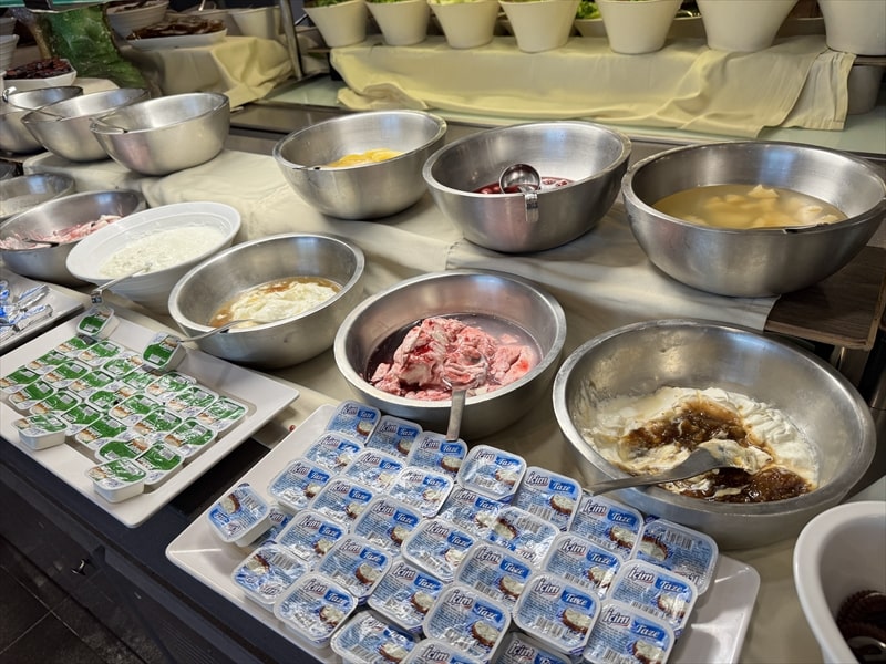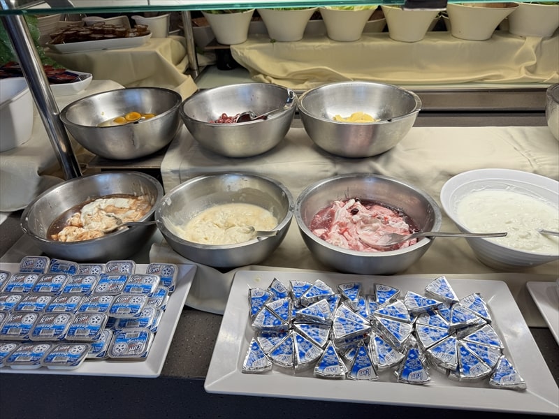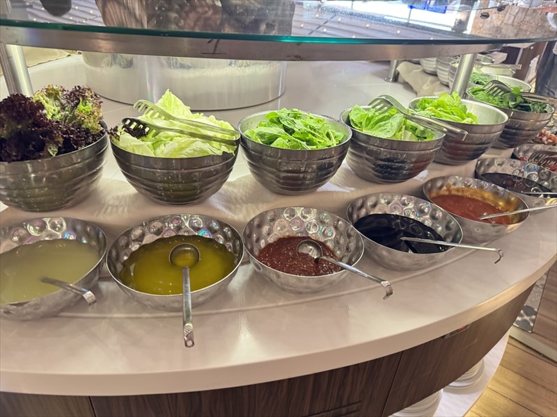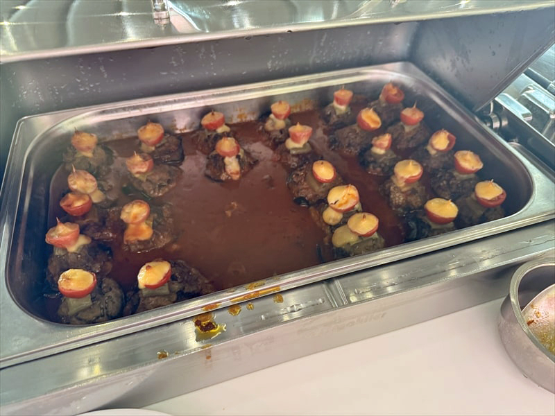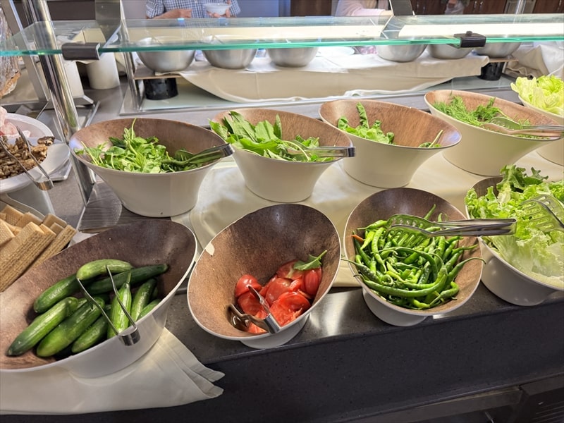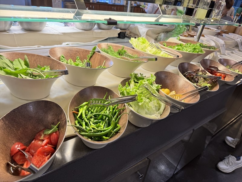 ビュッフェの料理は前菜や野菜、デザートの果物の種類が多くてとても楽しめたのですが、肉系や魚系のメインのものが少ないと思ったのは私だけでしょうか。