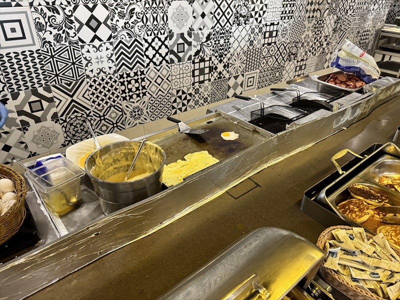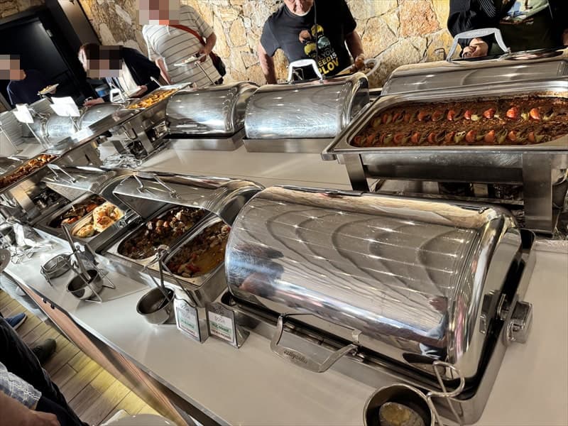 朝食も夕食と同じレストランでとなりますが、朝食のビュッフェも豪華に色々な料理が並びます。