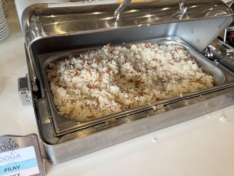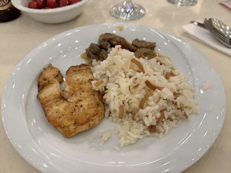 煮込み系の肉料理や魚料理は個人的には好きではないので、前菜などを頂いた他はランチでも頂いた酸味が美味しかったピラフがありましたので、ピラフをたくさん頂いてお腹一杯になりました。