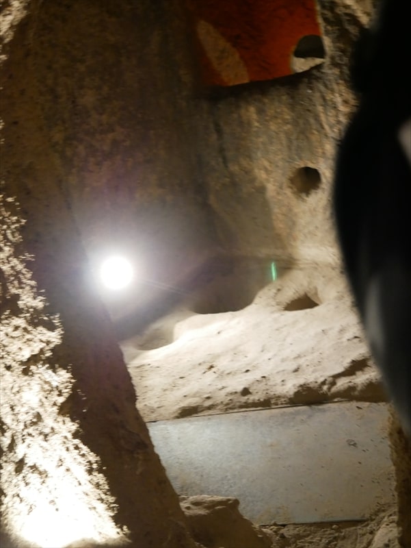 カイマクル地下都市には照明があるのですが、ツアーの方々と数珠繋ぎで歩いていますと足元まで照明の光が届かない時もあって、特に階段やスロープの所は足元をヘッドライトで照らして確認しながら歩くことが出来て便利でした。
