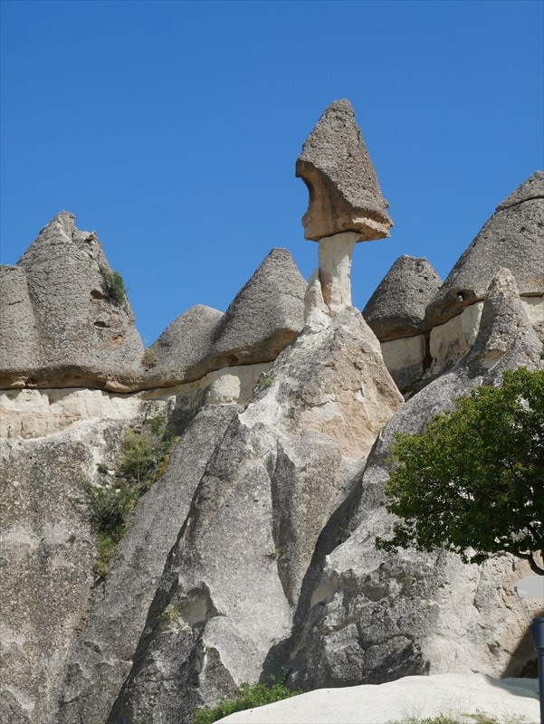 キノコ岩の上層の固い岩すぐ下の柔らかい部分はどんどん細くなって行くので、次回にここへ来た時には上の岩が落ちてしまっているかもしれませんと現地ガイドの方に言われました。