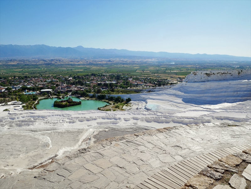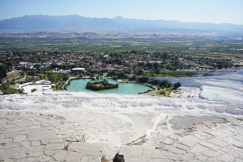 現在のパムッカレの温泉が流れている場所の様子はレビュー記事の画像で見てもらうことができます。
