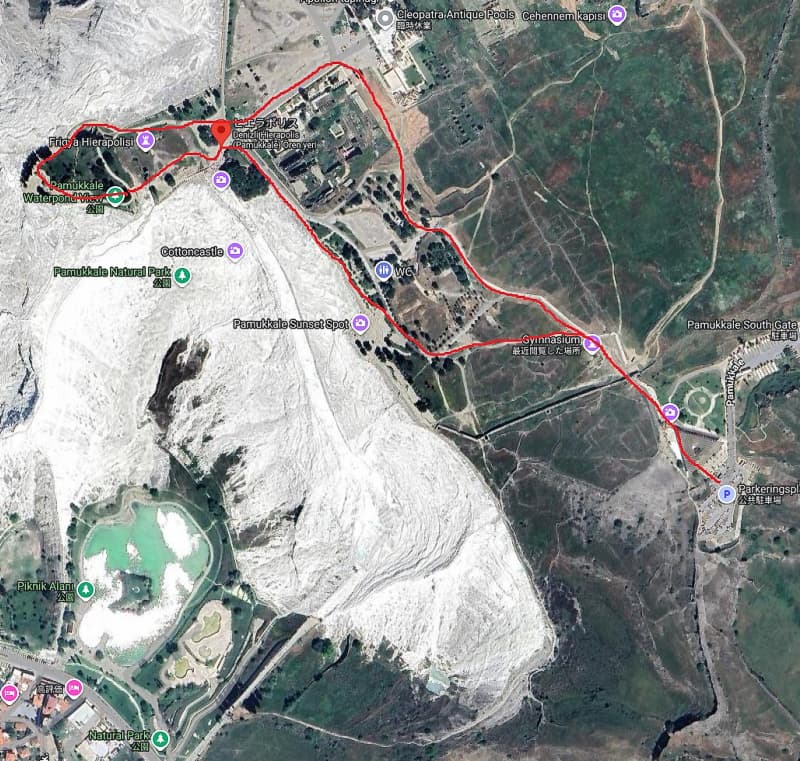 ヒエラポリス遺跡のローマ劇場の方まで行ける道もありましたが、遠景で眺めるだけでしたので、ローマ劇場の方まで行かれる方は更に40分ほど必要となります。