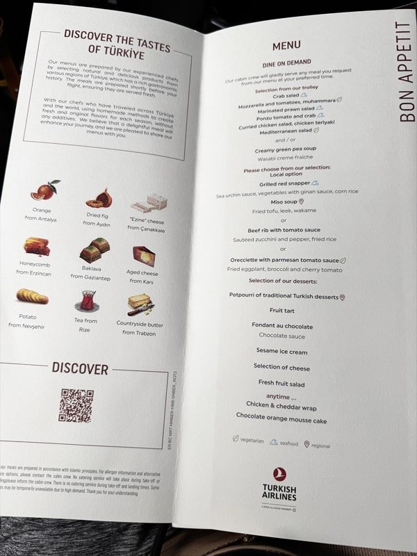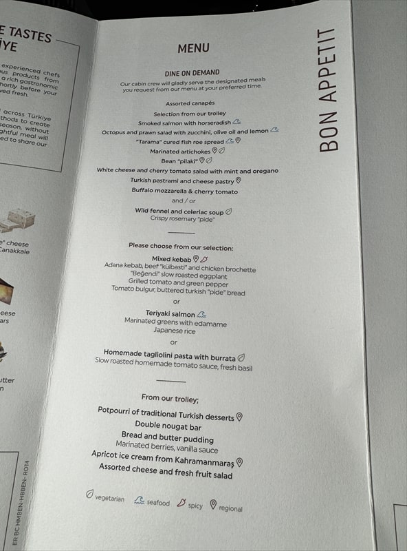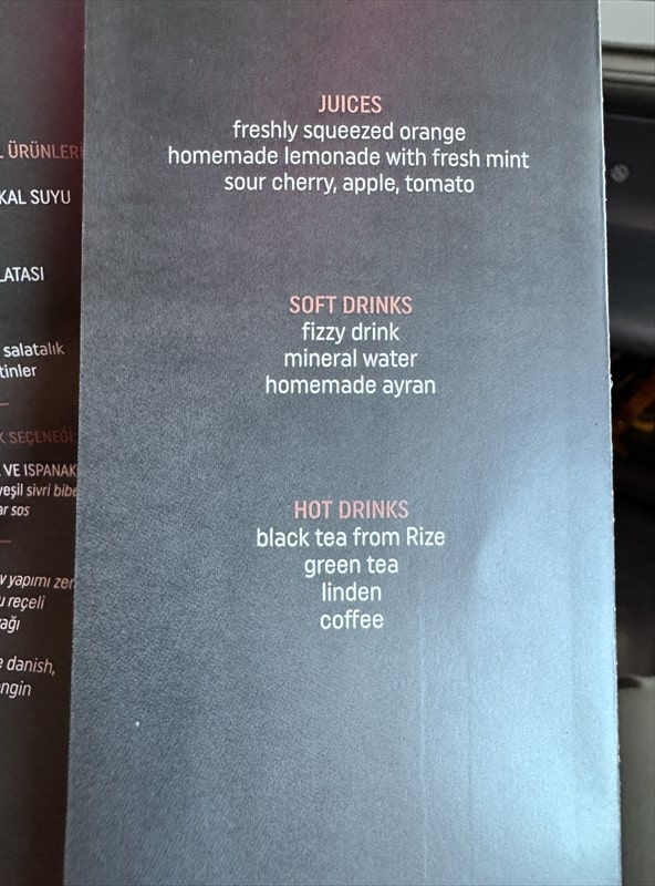 メニューはグーグルレンズで翻訳すれば良いのですが、ターキッシュエアラインのWi-Fiがなぜか不調で私は使えなかったのです。