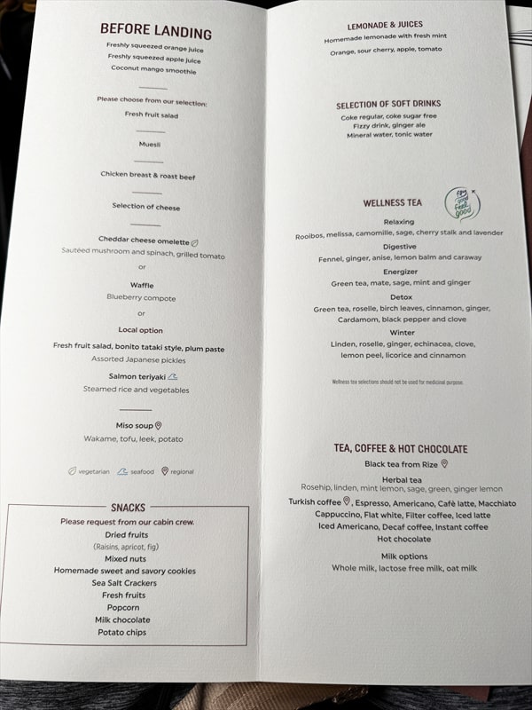 そして2回目の食事は成田空港到着の2時間前からとなりました。