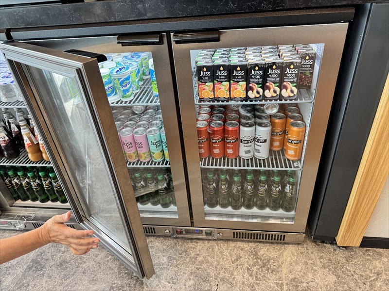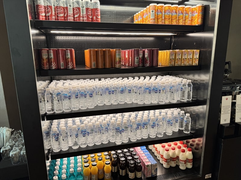 機内でフライト中のミネラルウォーターが1本では足りないと思うかたは、ラウンジでドリンクのボトルをもらって機内に持ち込むのがお勧めです。