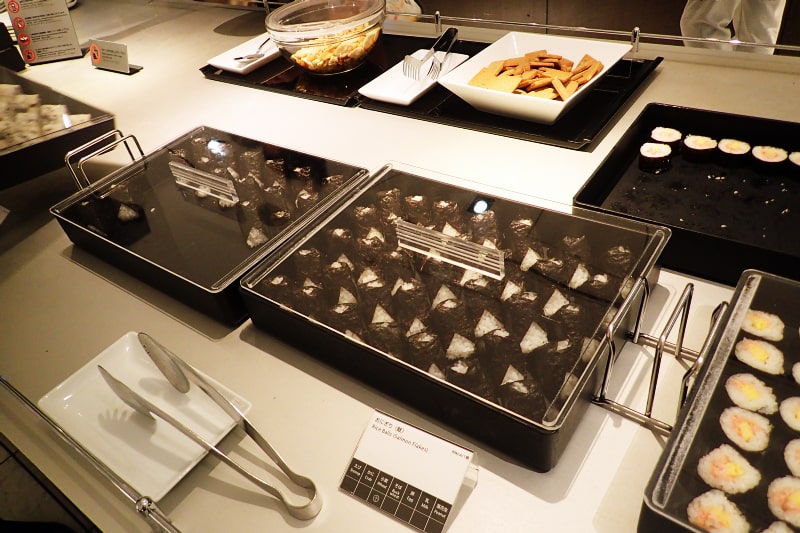 ANAラウンジの良いところは朝食に良い稲荷寿司やおむすびがあることです。