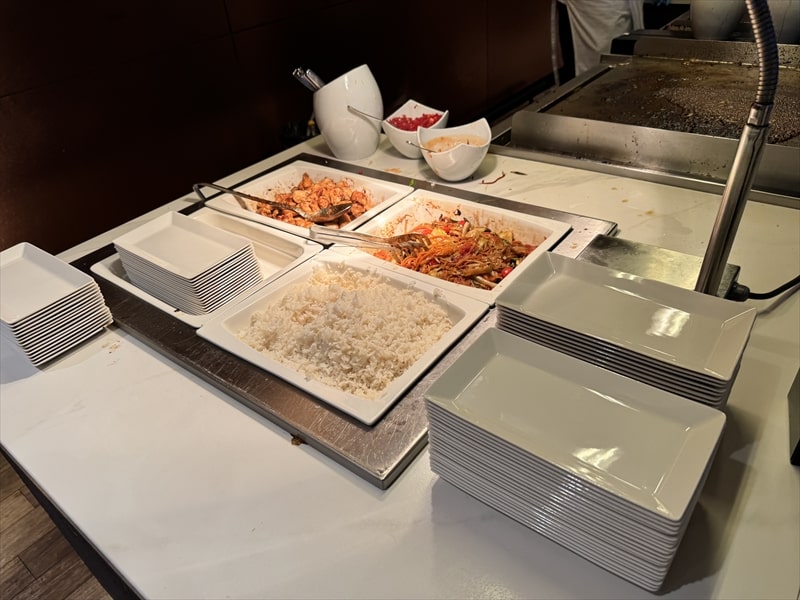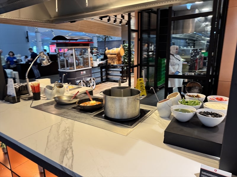 料理もサラダバーやデザートはすぐわかる場所にあるのですが、その近くのライブキッチンにはトルコ風ピザや焼きそばの様なものしかありませんでした。