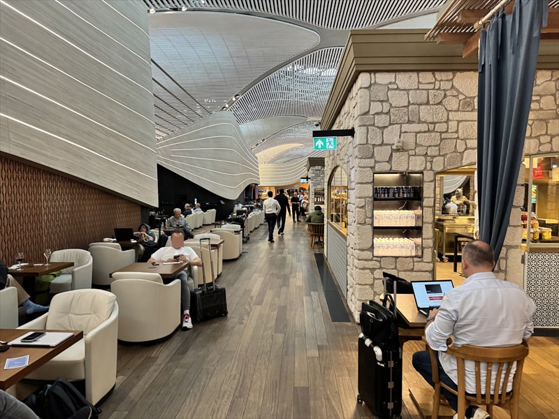 イスタンブールのターキッシュエアラインのビジネスラウンジは広いのですが、それにも増して利用客がとても多く混雑していましたので、私が利用した時(午後1時30分頃)は空席を見つけるのが大変でした。