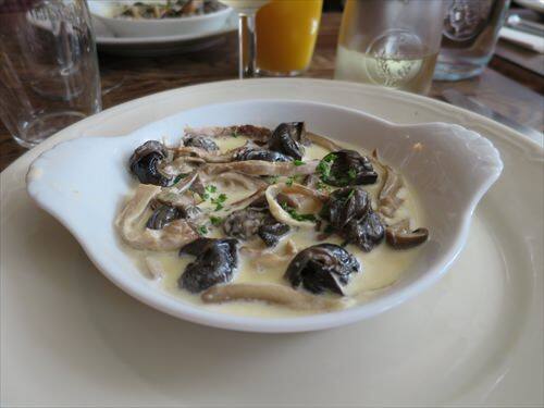 エスカルゴは殻付きで焼いたものを想像していたのですが、出されたものはエスカルゴのクリーム煮でした。