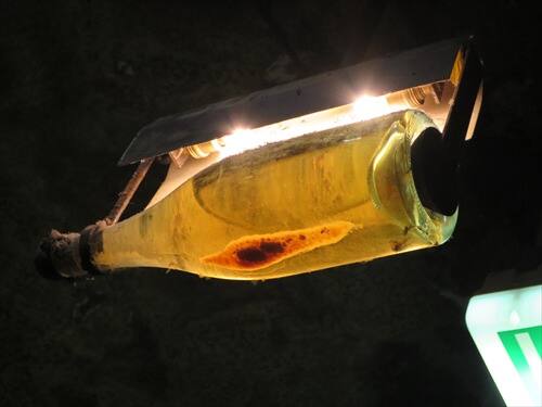 シャンパンの製造過程でできるオリの説明ディスプレイです。