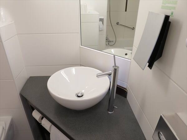 バスルームや洗面、トイレなどはとても機能的で不便を感じませんが、ホリデイイン自体がビジネス用や家族旅行用にホテルをリーズナブルな宿泊料金で提供するといったことがコンセプトですから、豪華さといったものではなくフランスらしいモダンなものとなっています。