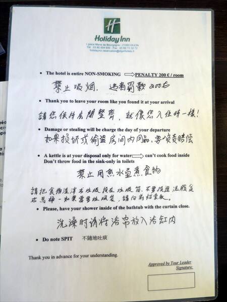 このホテルは中国人の方の宿泊が多いようで、部屋には中国語による宿泊の注意書きが書かれていました。