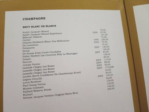 シャンパンリストを頂きましたがどれを選んで良いのか分かりませんのでお店のお勧めを頂きました。