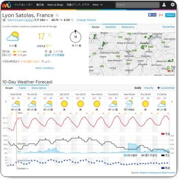 リヨンの15日間の天気予報を日本語で見ることができます。