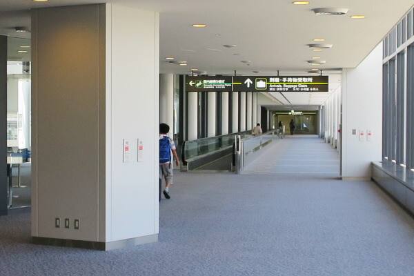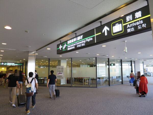 セントレアの航空会社カウンターでスーツケースを成田空港からの乗り継ぎでの最終地まで運んでもらう手続きをしてあれば、国際線出国ロビーに出ることなく出国して国際線に乗り継ぐ施設を利用できます。