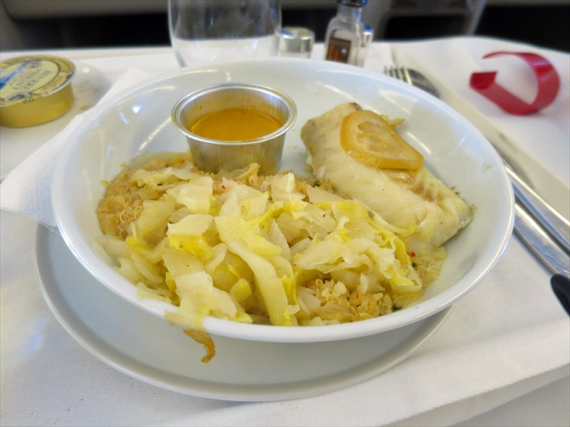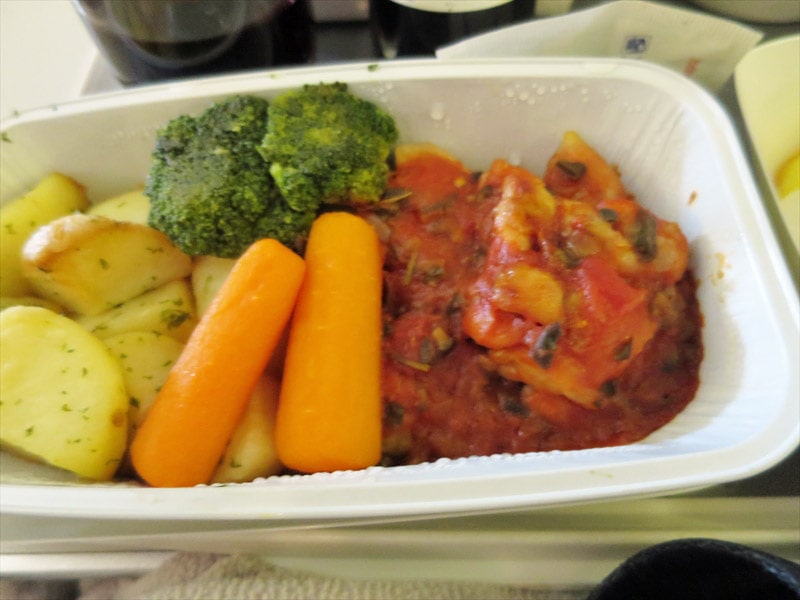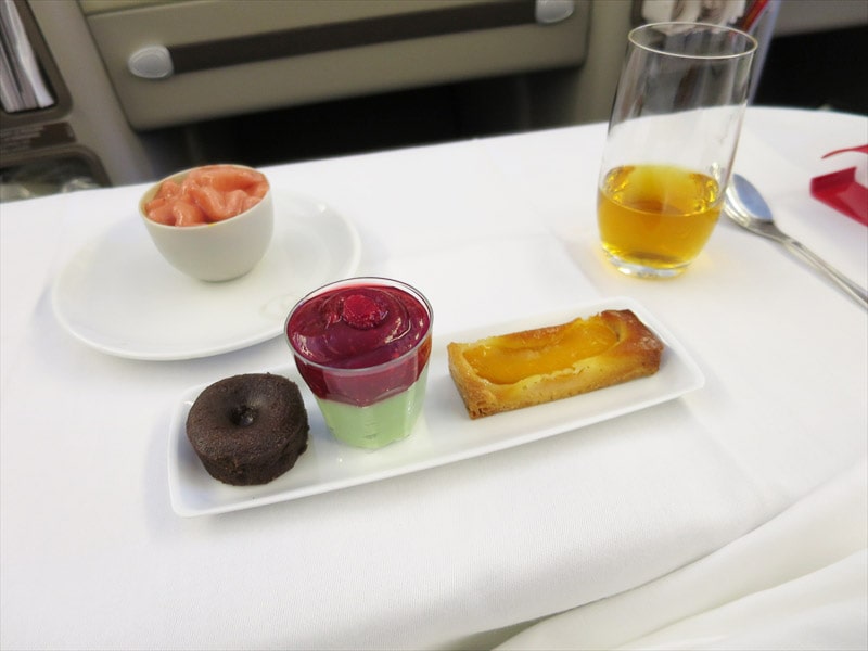 こちらも美味しく頂くことが出来ましたが、やはりCAの方は食事中には来ませんでしたので飲み物のお代わりでワインをもらうことは出来ませんでした。