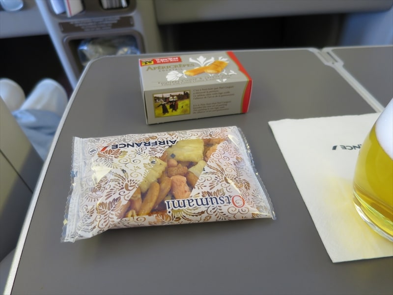 ビジネスではグラスでのワインの提供となりますが、エールフランスではお代わりのワインサービスが来ないことがありますので、お代わりをする必要が無いミニボトルをもらえたのは良かったと思いました。