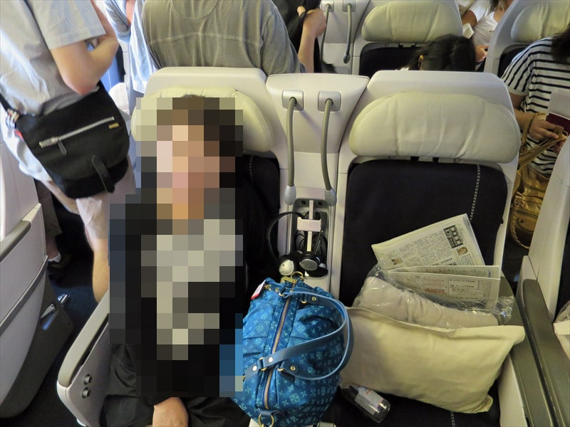 また、各席がセパレートとなっていますので、ペアーの場合はエコノミーのように肘掛を上げて横すわりが出来ません。
