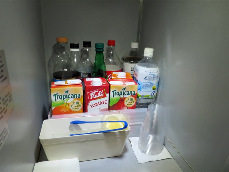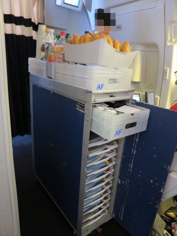 思ったよりもCAさんは来ないので、飛行中にのどが渇いたときには自分でエコノミークラスまで行き、バースタンドにある飲み物を飲みました。