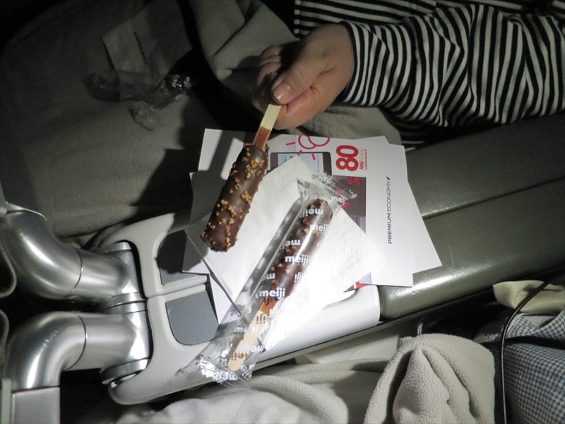 寝ている間にアイスクリームのサービスがありましたが、これは明治の「うまか棒」でした。