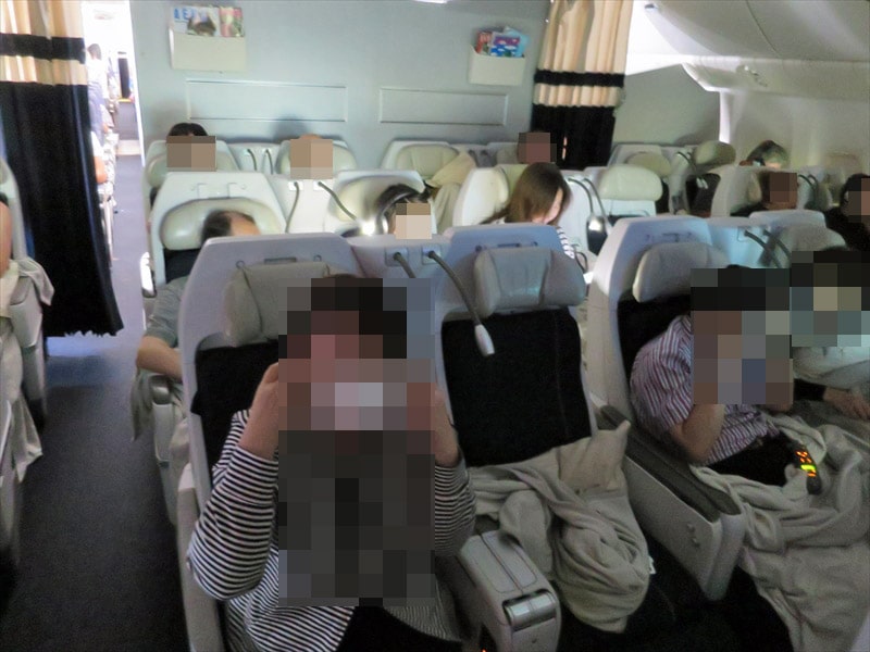 フランス人の方は自分でギャレーにワインをもらいに行っていましたので、プレミアムエコノミーであってもお代わりはもらいに行く必要があるようです。
