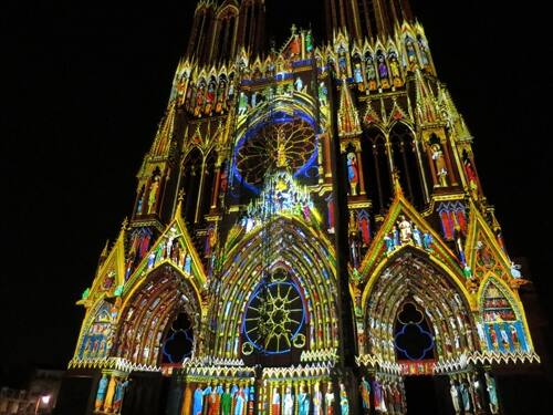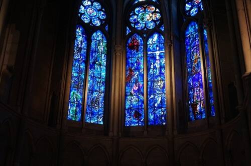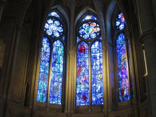 ランスの大聖堂は火災によりかなりの部分が崩壊してしまったことから、再建されたステンドグラスにはシャガールの作品がありました。