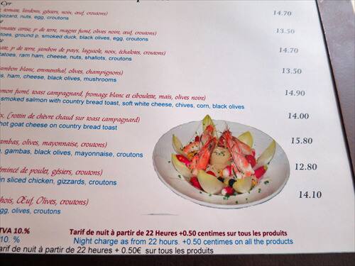 今回注文したものはエビのサラダ(SALADA DE GAMBAS) 15.8ユーロとビーフタルタル(TARTARE DE BOEUF) 15.5ユーロとラウのギブル(LA POTENCE DE LAU) 27.5ユーロです。