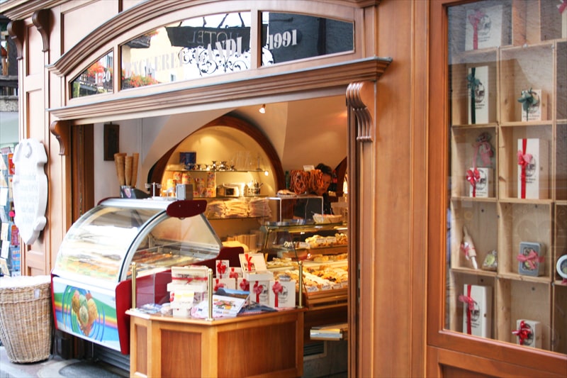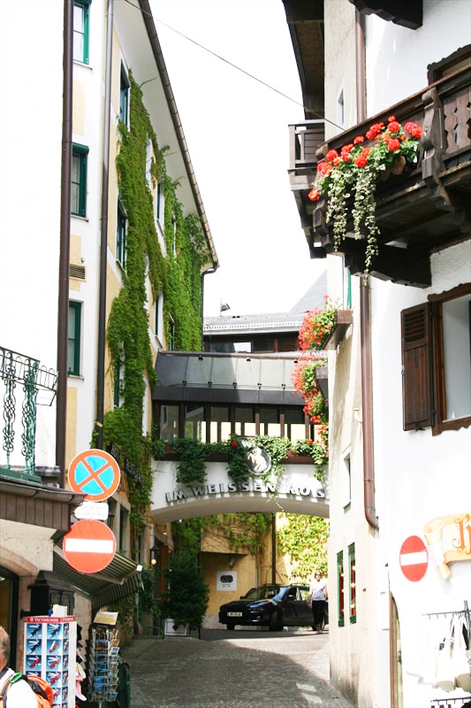道路の両脇にはお土産店やカフェ、レストランやホテルが並んでいますが、それらの窓辺には綺麗な花がいっぱいなので美しい湖畔の町の散策となりました。