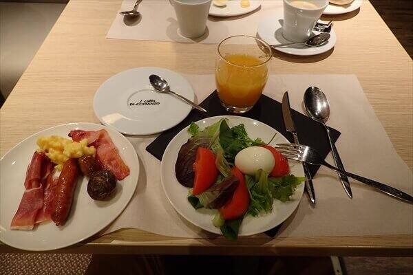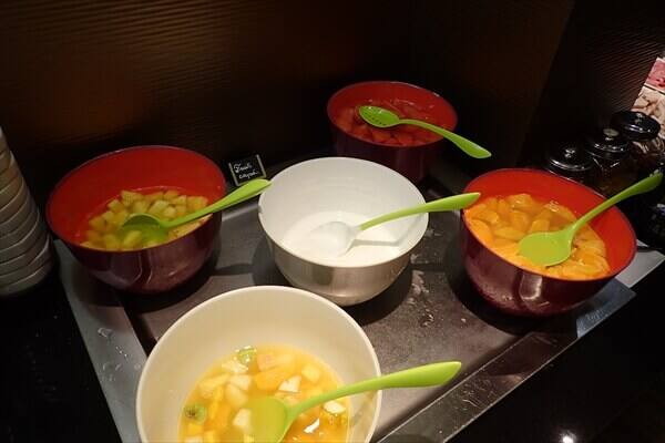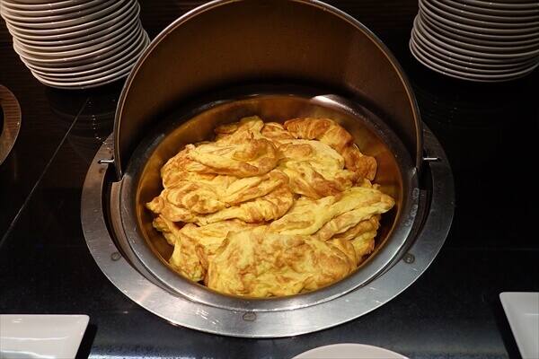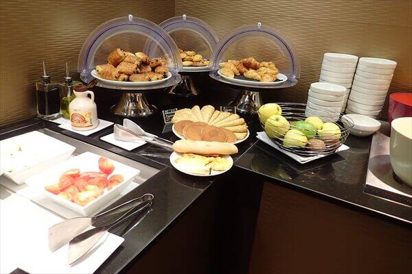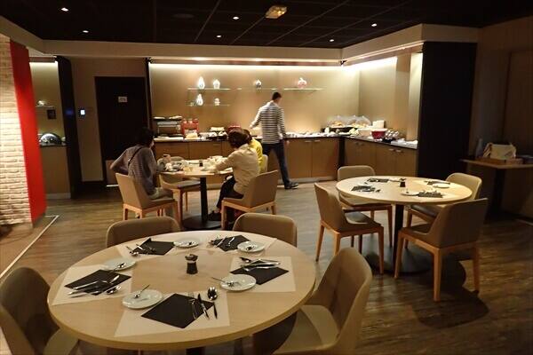 長いフライトと寝不足の朝には十分な内容の朝食で、ビュッフェレストランの様子は次となっています。