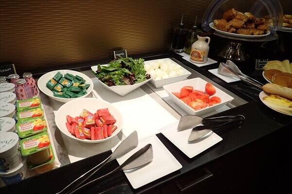 フランスのホテルの朝食ビュッフェには野菜が無いホテルもあるのですが、こちらには生野菜の葉物とトマトがありました。