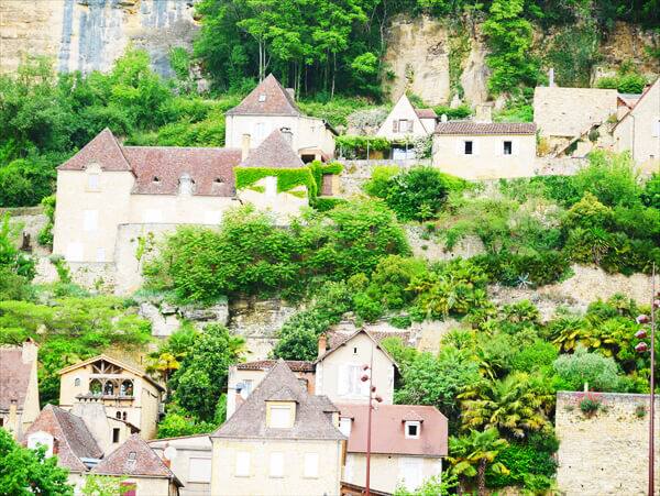 ラロックガジャックはこのドルドーニュ川の渓谷にある村で、川岸から切り立った断崖絶壁の場所の建物が建てられている村です。