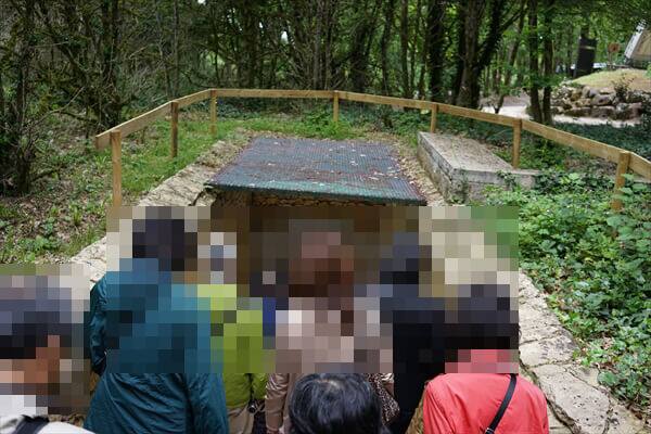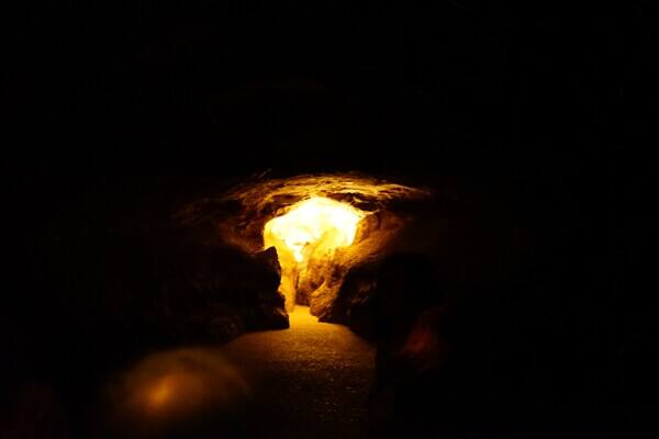 洞窟入口から階段を下りますとトンネル状になっていてガイドの方の説明を聞きます。