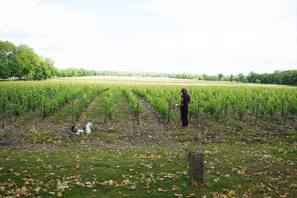 まずはシャトーのすぐ横にあるブドウ畑に行きブドウ栽培の説明を聞きました。