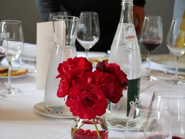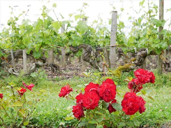 ブドウ畑の横にバラの花が植えてあるのは観賞用ではなく、ブドウが病気にかかった場合にバラも同様になることから分かりやすくするために植えてあるそうです。