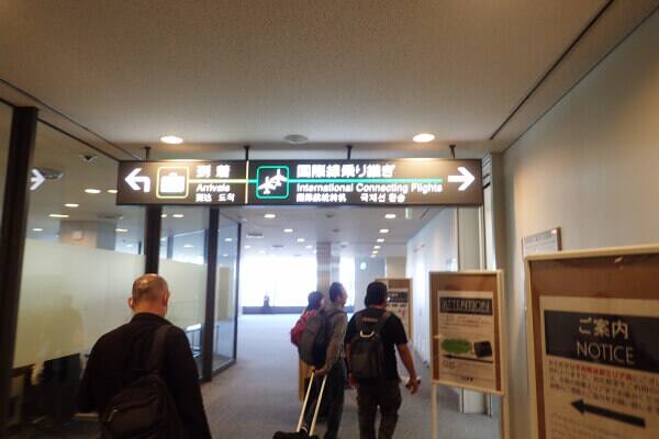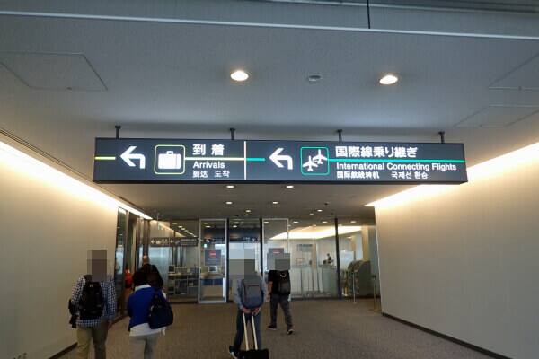 セントレアから成田に到着しましたら通路には到着と国際線乗り継ぎという表示が出ていますので案内に沿って進みます。