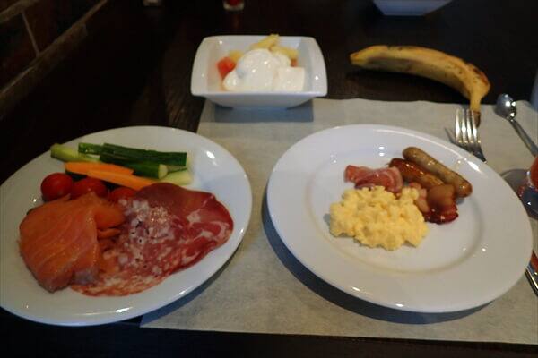 少ないながら野菜はありましたし、サーモンや生ハムもおいしく頂きました。