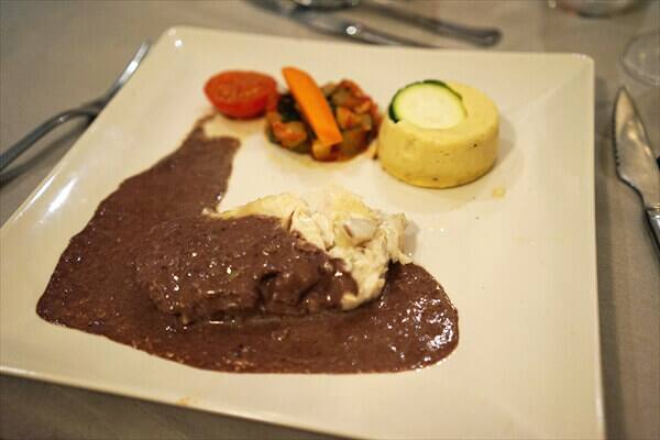 この日のディナーはカオール近郊で宿泊したシャトーホテルのシャトードメルキューのレストランで頂きました。
