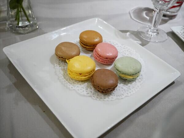 デザートは洋ナシのタルトだけでなくマカロンも出して頂きました。