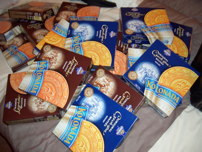 チェコのお土産の御菓子には、私もチェコ市内のショッピングセンターで大量買いをした、ウエハースでクリームをサンドした温泉地の定番スパ・ワッフルがあり、これは空港でも購入できます。