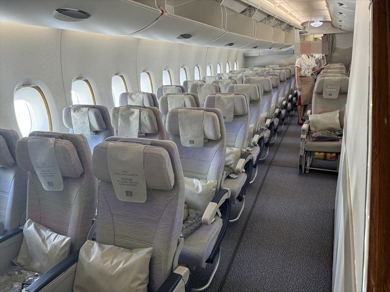 私たちが乗った機材のエコノミークラスの席は3-4-3となっていました。