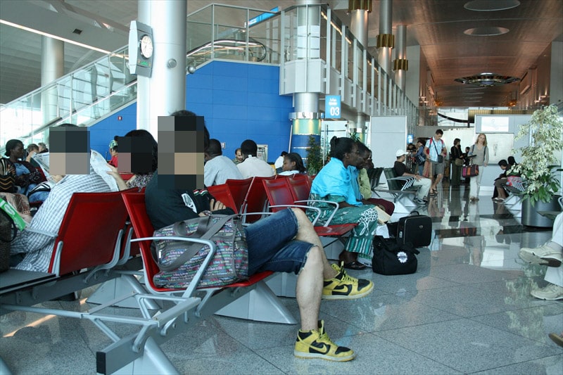 ドバイの空港での乗り継ぎ時間は寝ることが出来ないので、疲れて椅子に座る事になります。